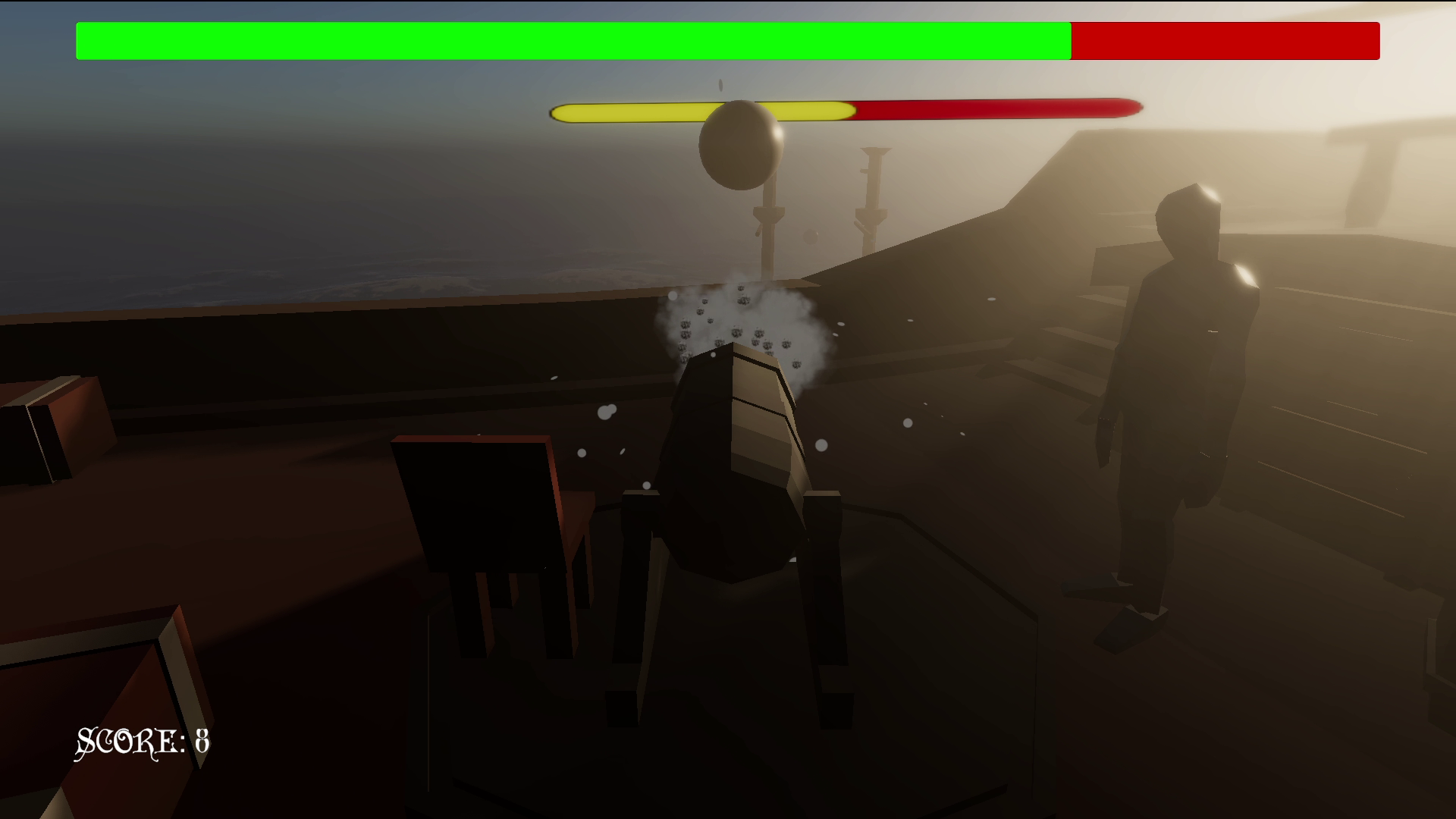 Monkey Eyes is a 2 player co-op game where players try to survive by defeating the enemy ships. Use the mortar to bring them down! The monkey can see where the cannon will fall, so it must tell the human how to adjust the mortar using its masks.